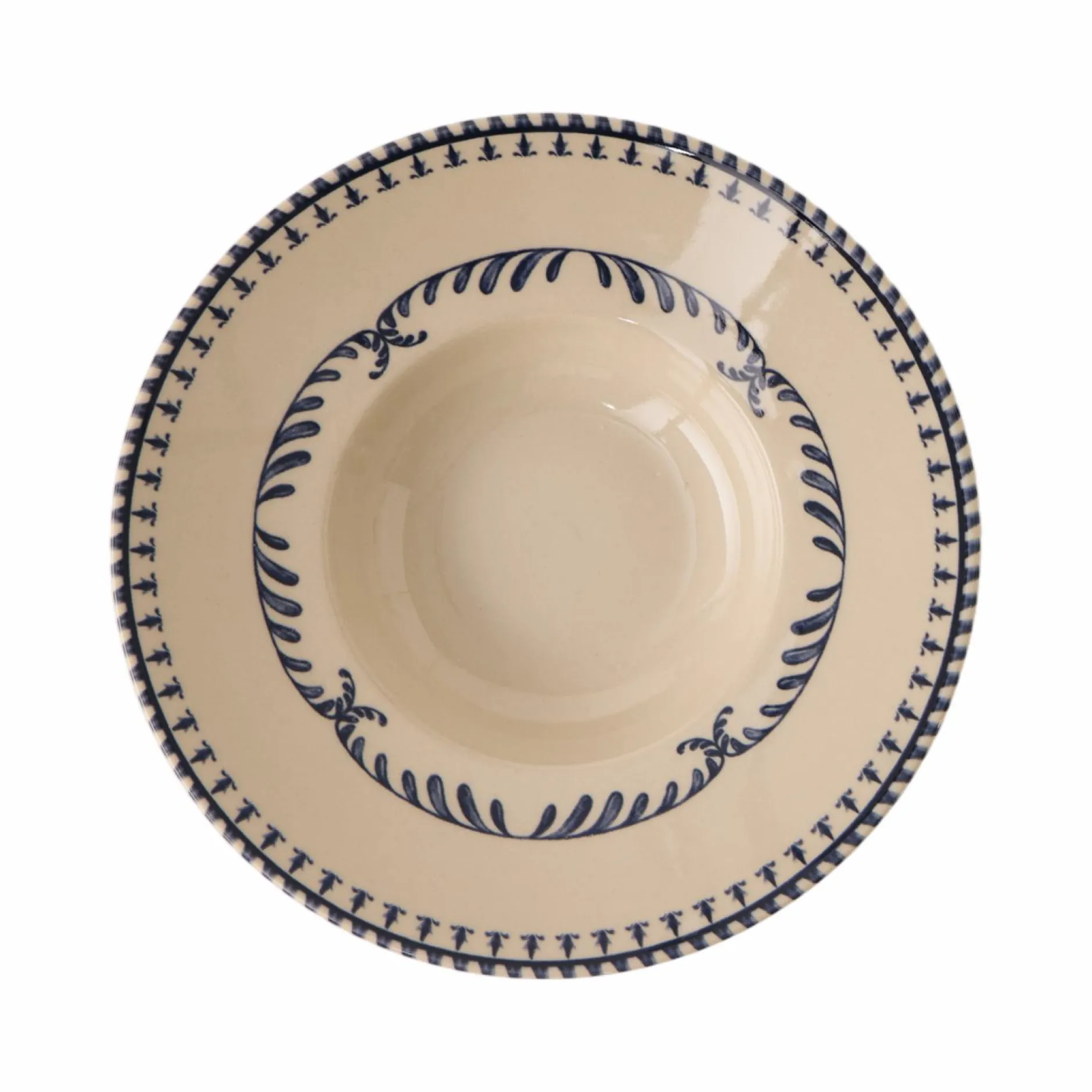 Le contraste entre la teinte crème et le bleu profond du décor apporte un vrai cachet à votre table, sans jamais en faire trop. Solide, pratique et pleine de personnalité, cette assiette trouve naturellement sa place dans une cuisine moderne comme plus classique.