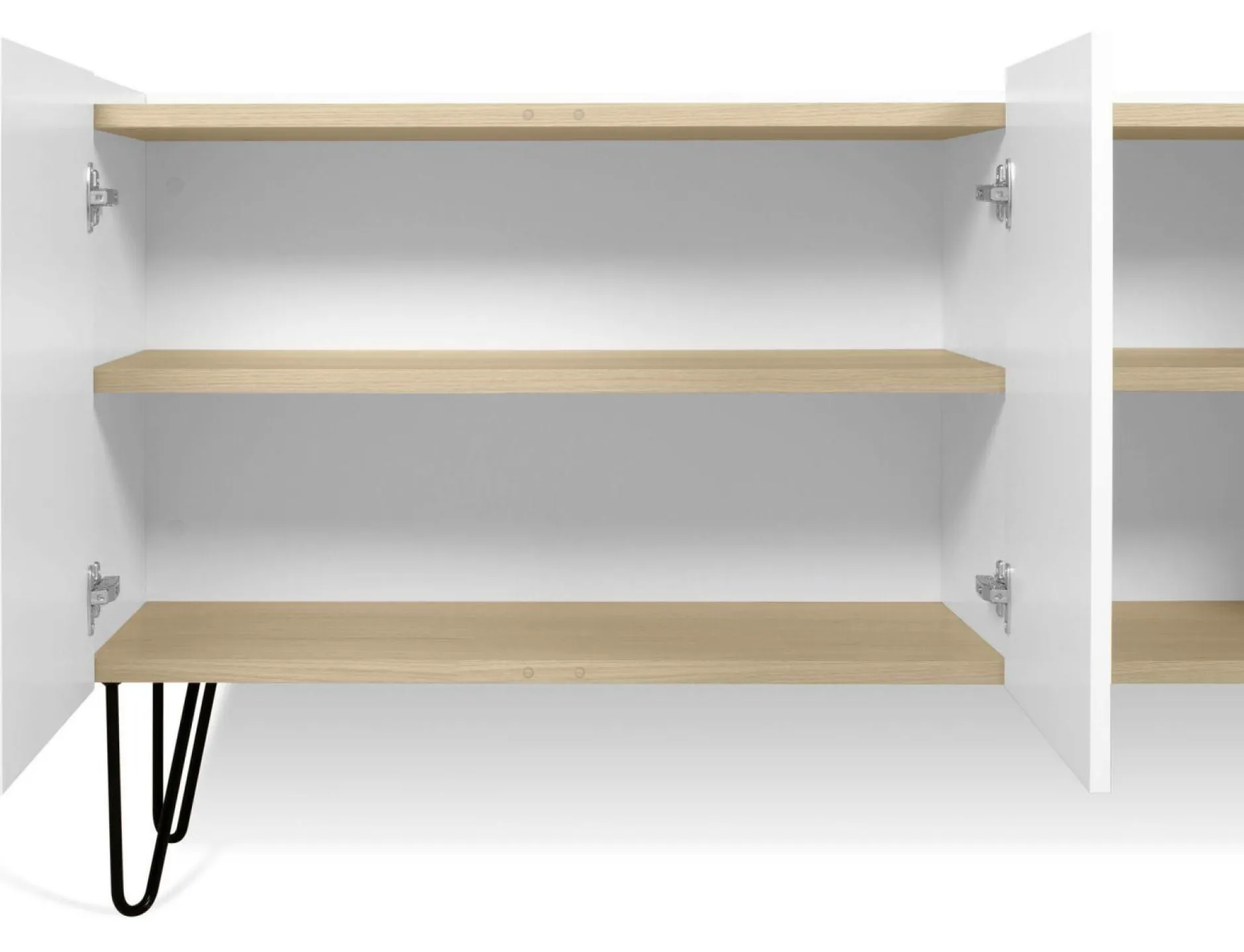 Le Buffet 3 portes Nina est un grand buffet pratique et élégant. Il se compose de 3 portes avec 2 étagères et de 2 niches ouvertes.