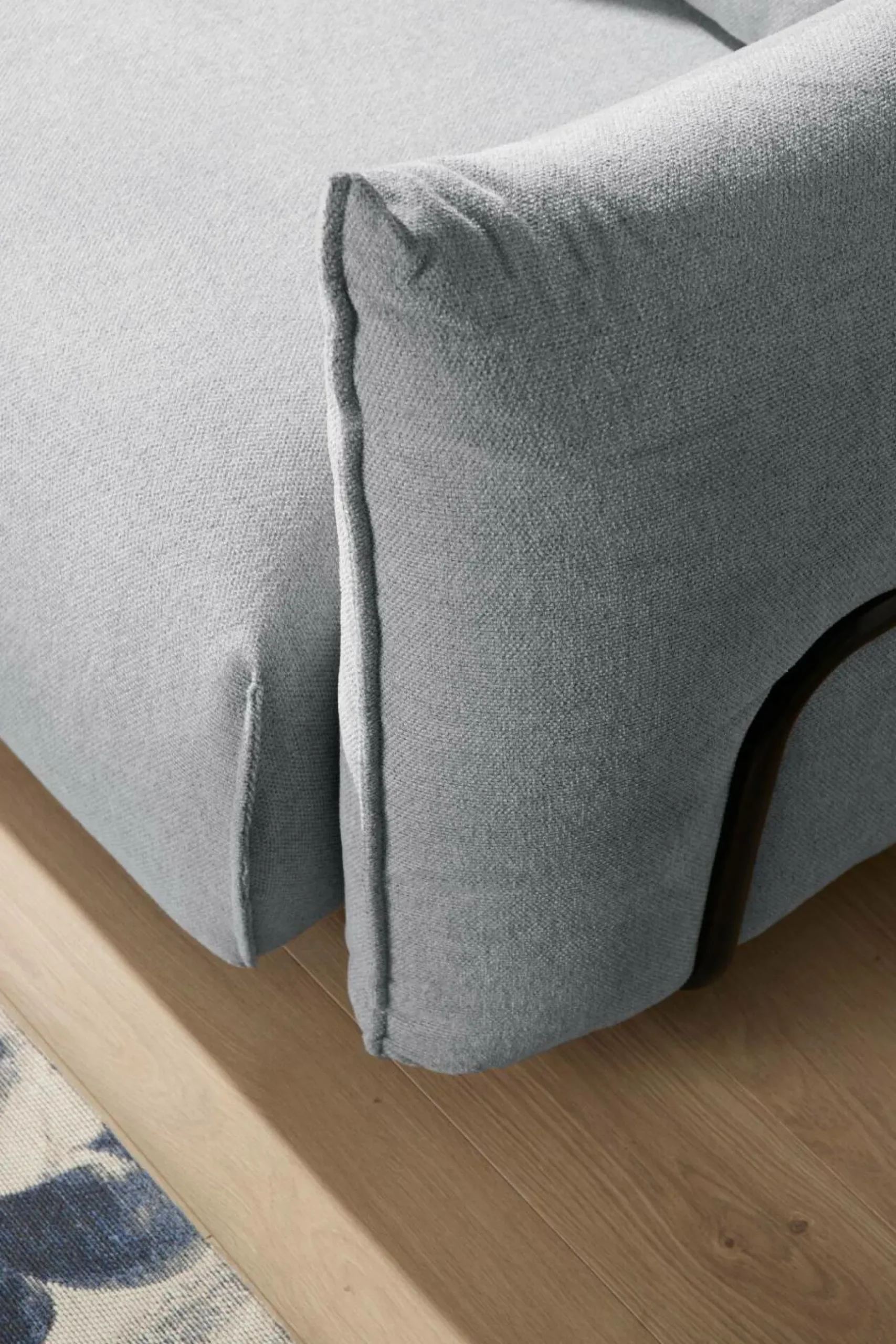 L’élément déco de cette collection : les accoudoirs sont rehaussés d’un support métal. (Les accoudoirs sont disponibles sur les éléments : méridienne et chauffeuse avec accoudoirs)
