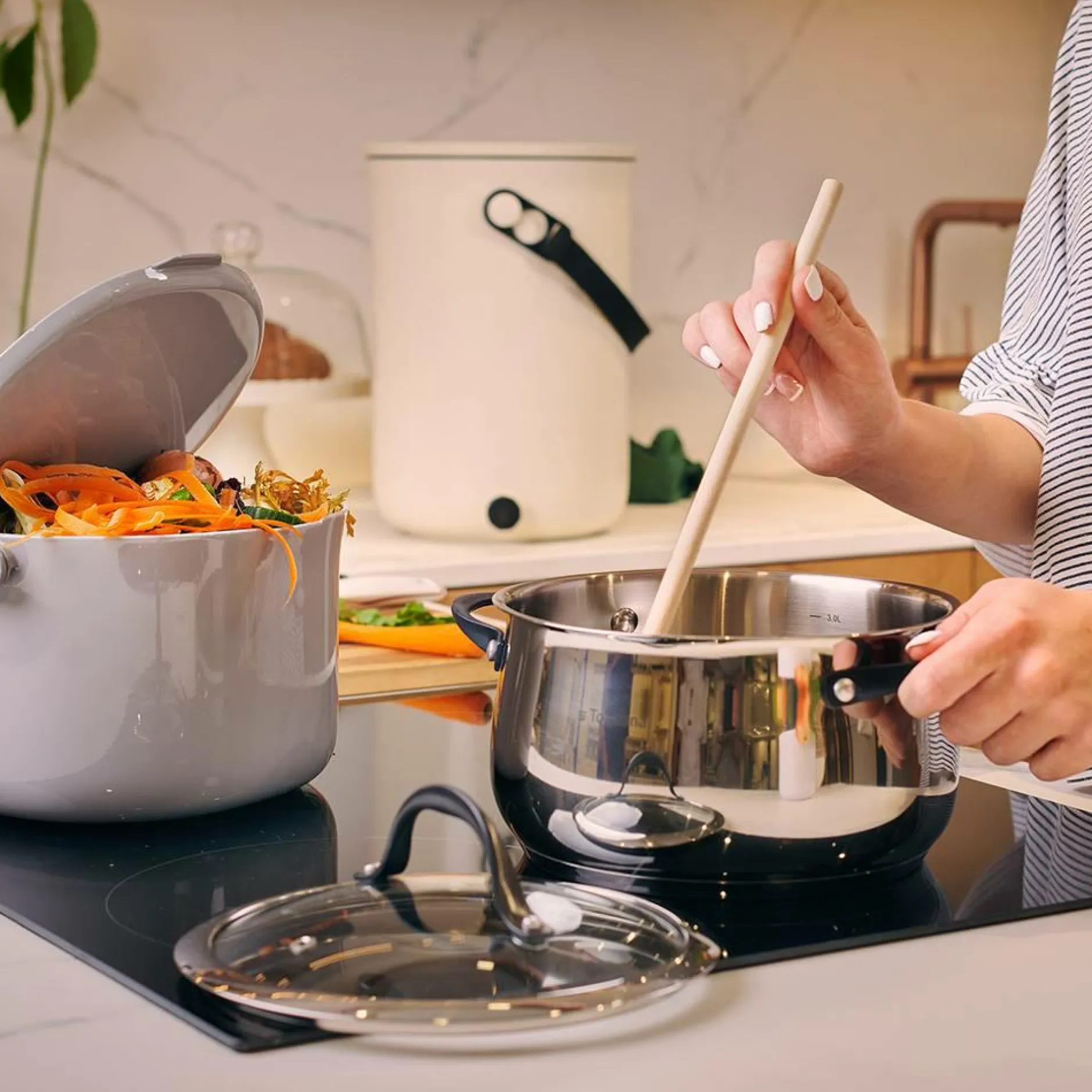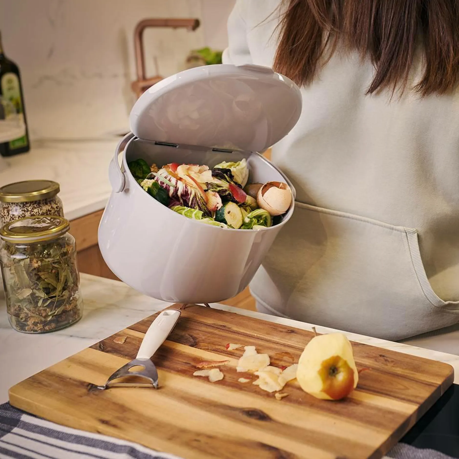 Le bac à compost Organko Daily est une poubelle pour vos déchets organiques qui vous permet de faire l’intermédiaire entre votre plan de travail et votre composteur. Vous pouvez collecter vos déchets alimentaires et les vider régulièrement dans votre composteur d’intérieur (ou d’extérieur !).