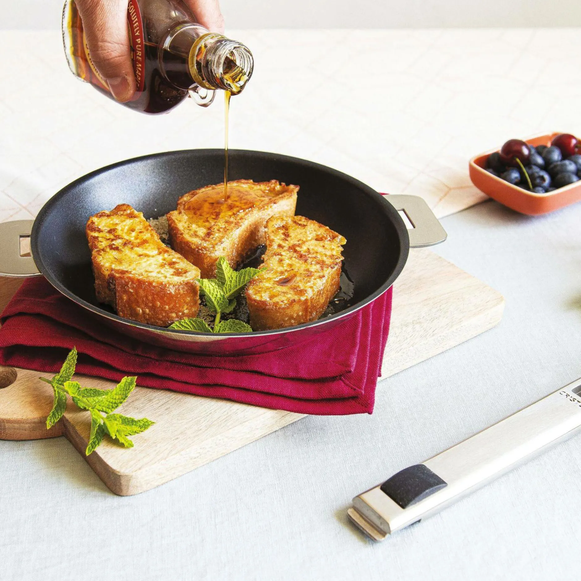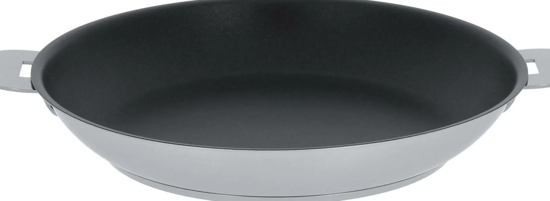 Poêle en inox 18/10 à poignée amovible, finition brossée, avec revêtement anti-adhésif Exceliss. Collection Strate Amovible.