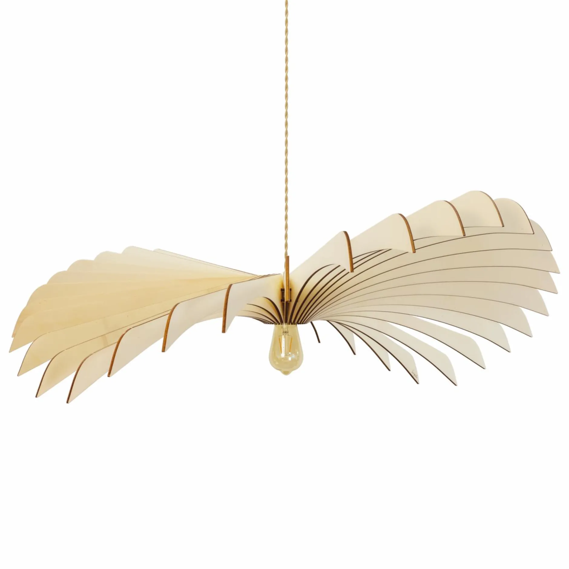 Ses 36 pales en bois local naturel de peuplier contreplaqué offrent un très joli jeu de lumière. Placez la dans une entrée, dans une chambre ou dans votre pièce à vivre, elle attirera les regards en toute élégance et légèreté !