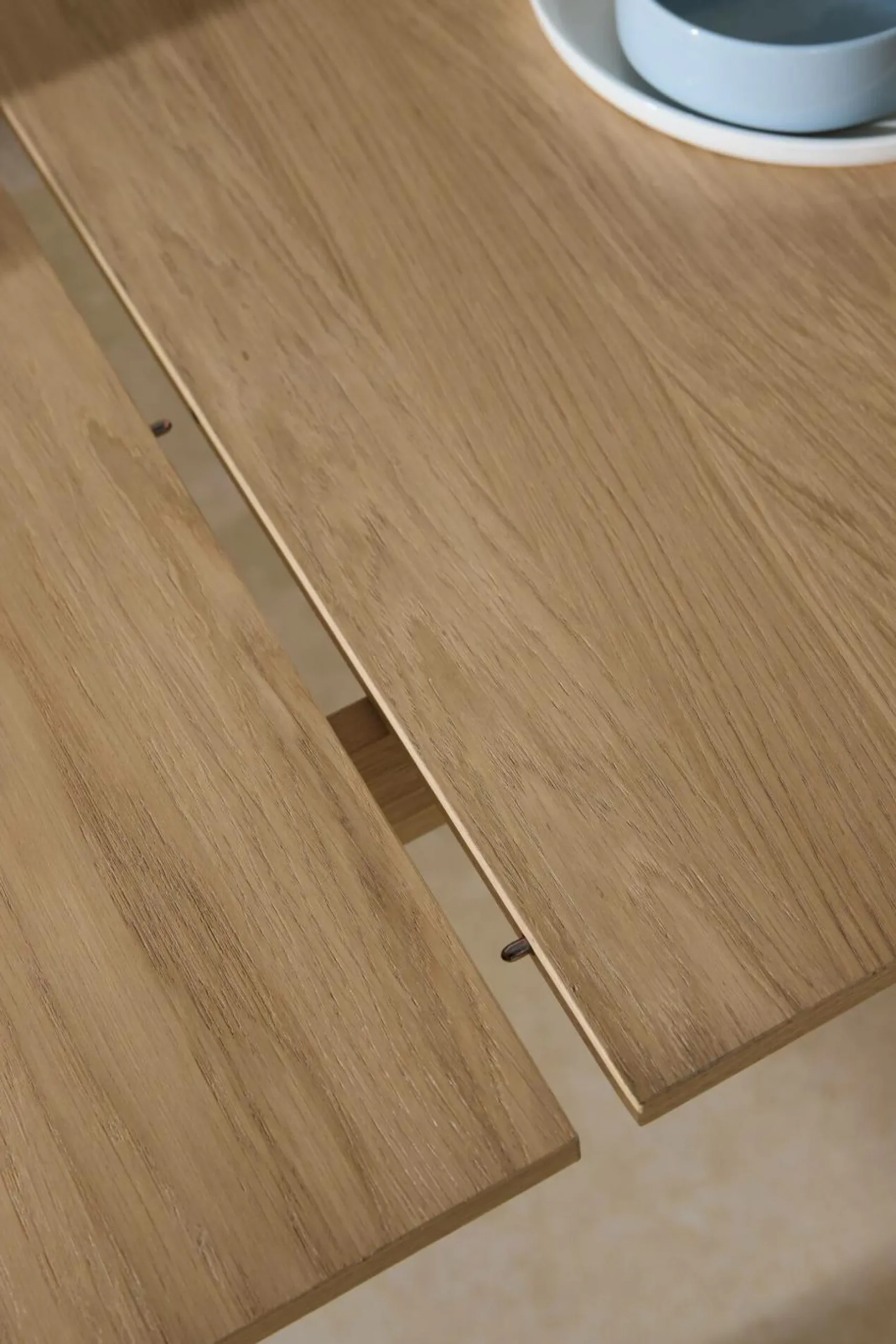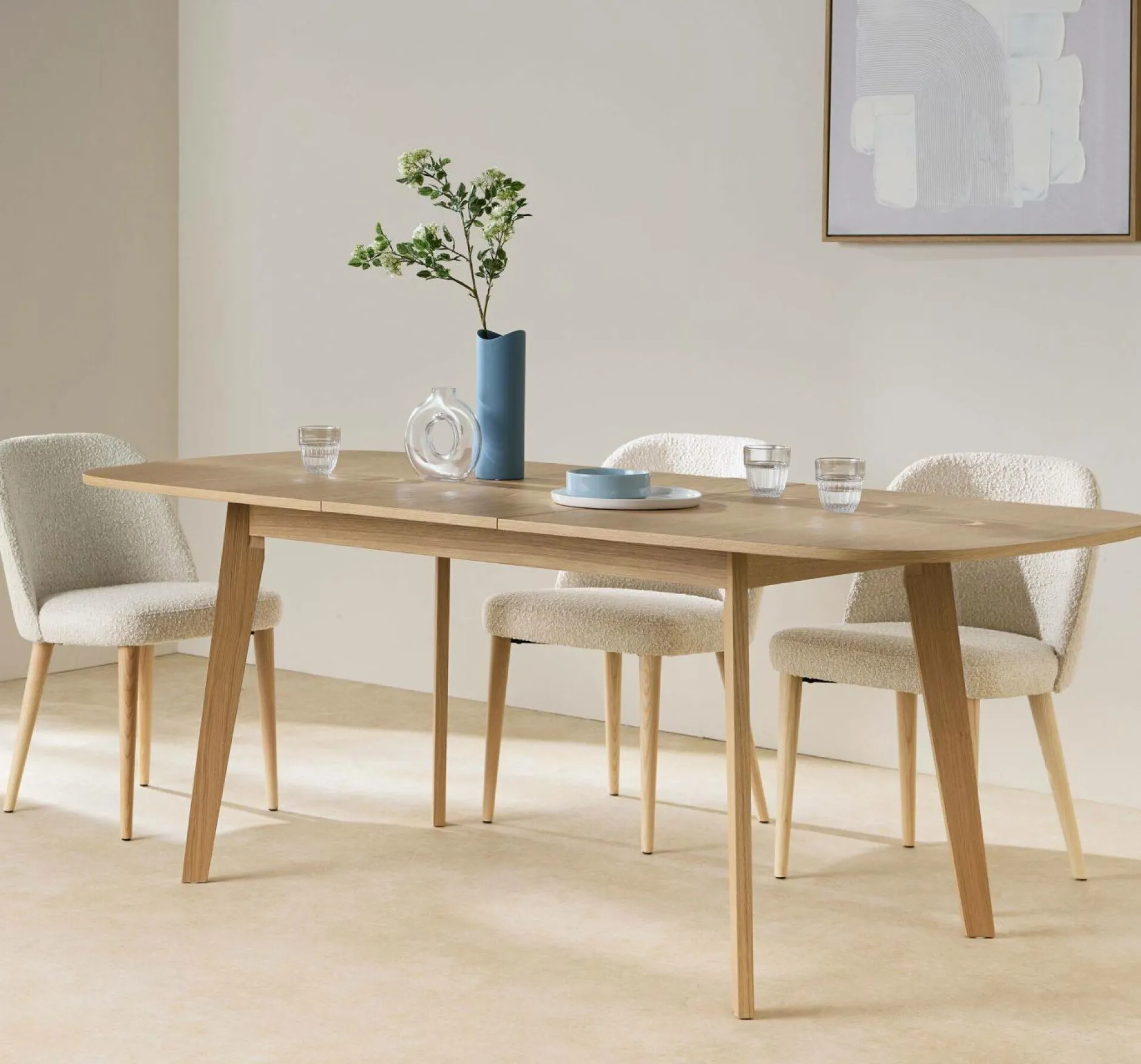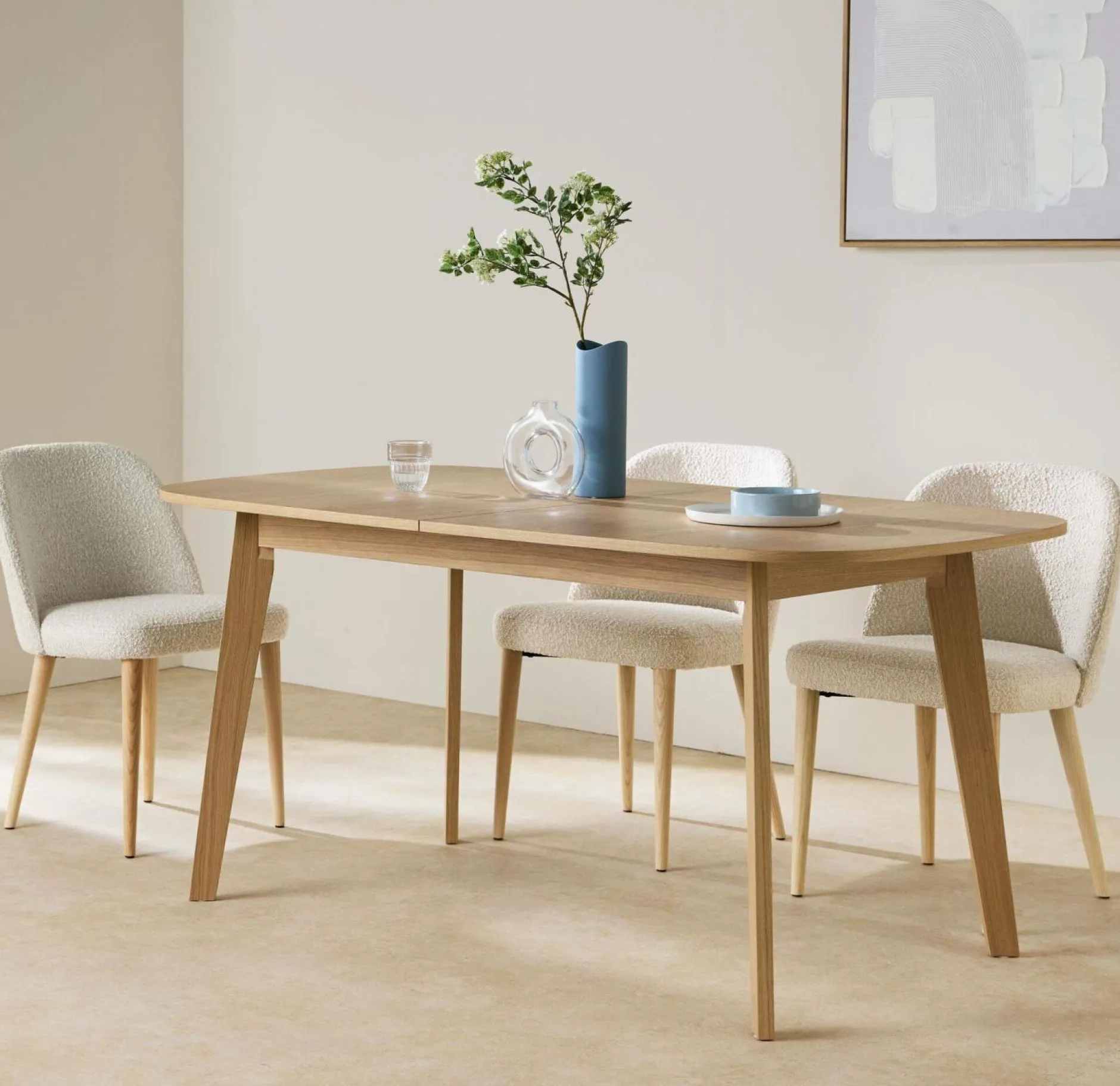 Pratique au quotidien, elle accueille confortablement 6 convives, et peut en recevoir jusqu’à 8 grâce à son allonge intégrée, astucieusement dissimulée sous le plateau. Un simple geste suffit à l’agrandir pour les repas en famille ou les dîners improvisés.