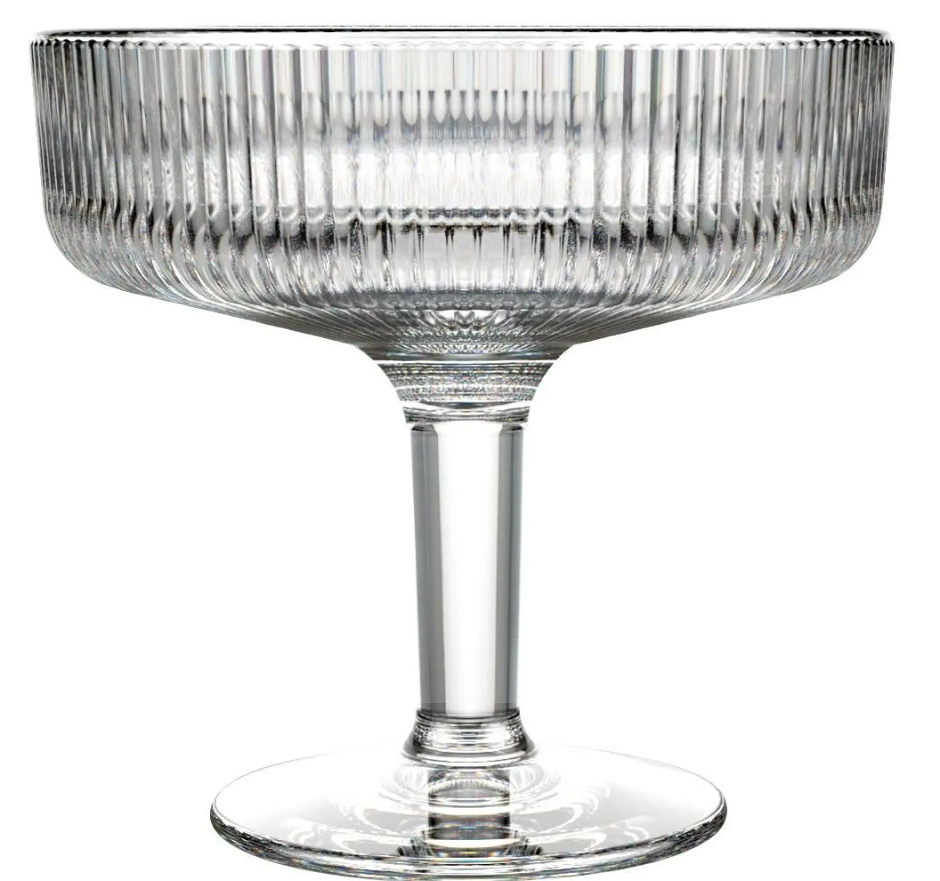 Vous pourrez, à votre guise, la remplir de glace ou de cocktails ! Cette coupe élancée avec son décor finement strié offre une très jolie accroche à la lumière et donnera de l’éclat à votre tablée.