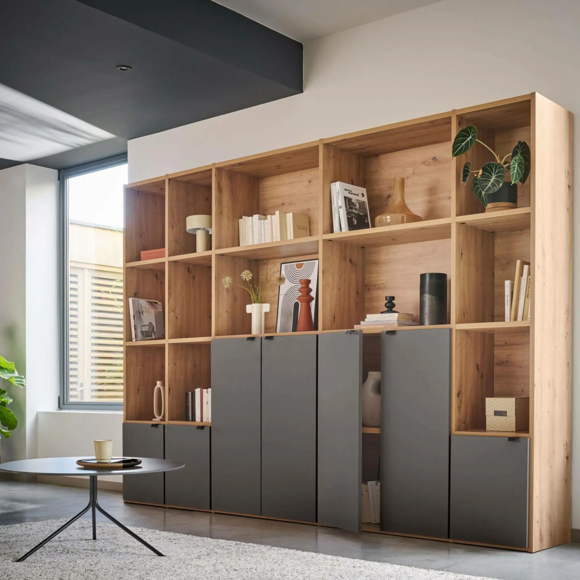 Ses portes peuvent être placées où vous le souhaitez pour personnaliser selon vos besoins. Disponible en plusieurs finitions et dimensions, la bibliothèque 7 portes s’intègre harmonieusement dans tous les styles d’intérieurs.