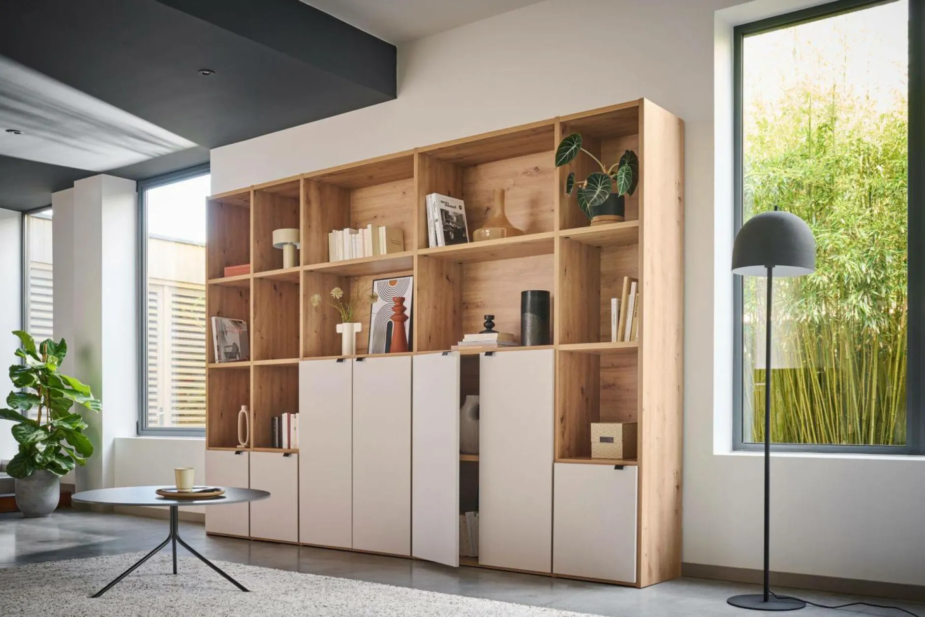Ses portes peuvent être placées où vous le souhaitez pour personnaliser selon vos besoins. Disponible en plusieurs finitions et dimensions, la bibliothèque 7 portes s’intègre harmonieusement dans tous les styles d’intérieurs.