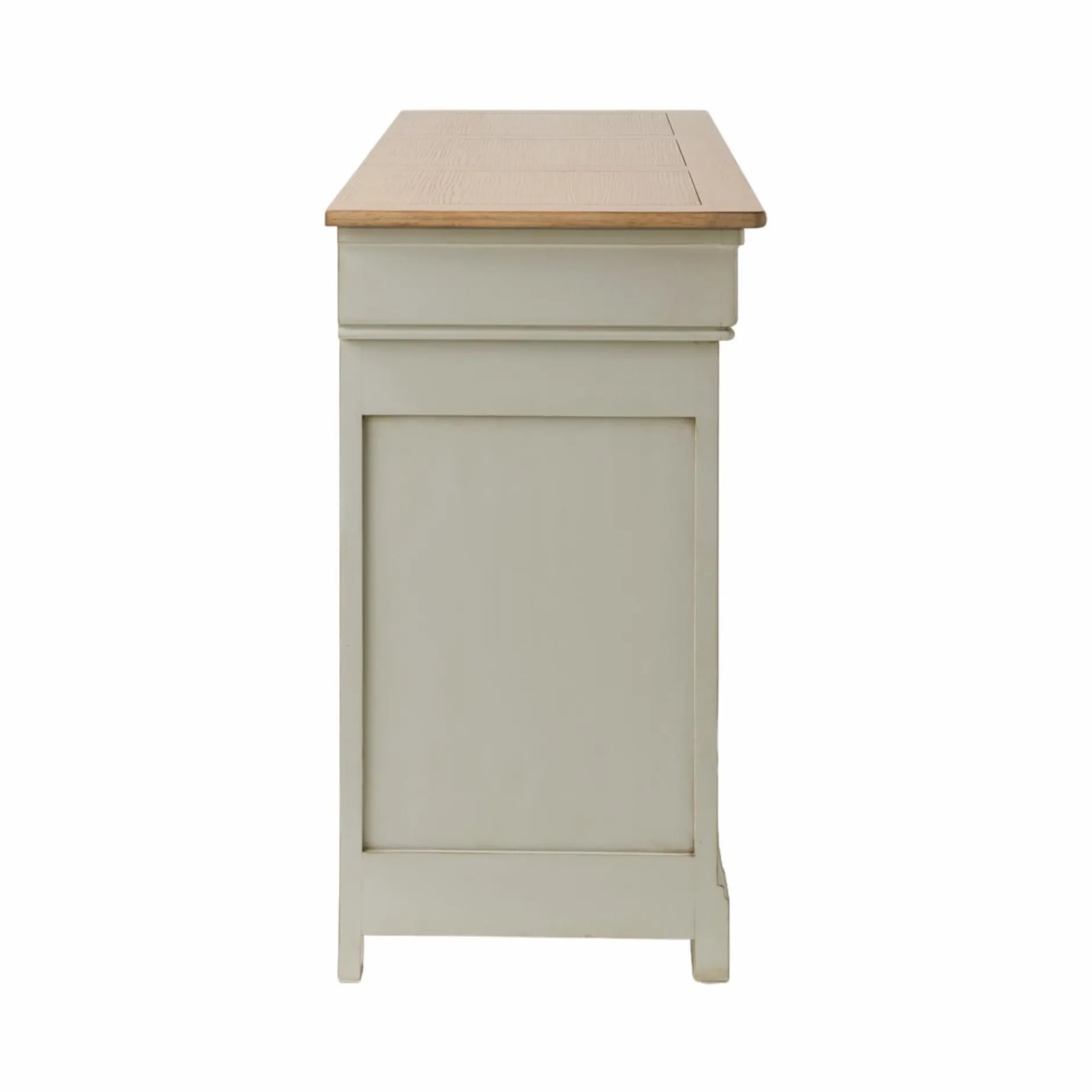 Sa silhouette intemporelle est soulignée par des moulures en façade, véritables signatures d’un style classique assumé. Sa finition antiquaire, appliquée à la main, révèle des marques d’usure volontairement visibles, offrant à chaque pièce une patine unique, pleine de caractère et d’authenticité.