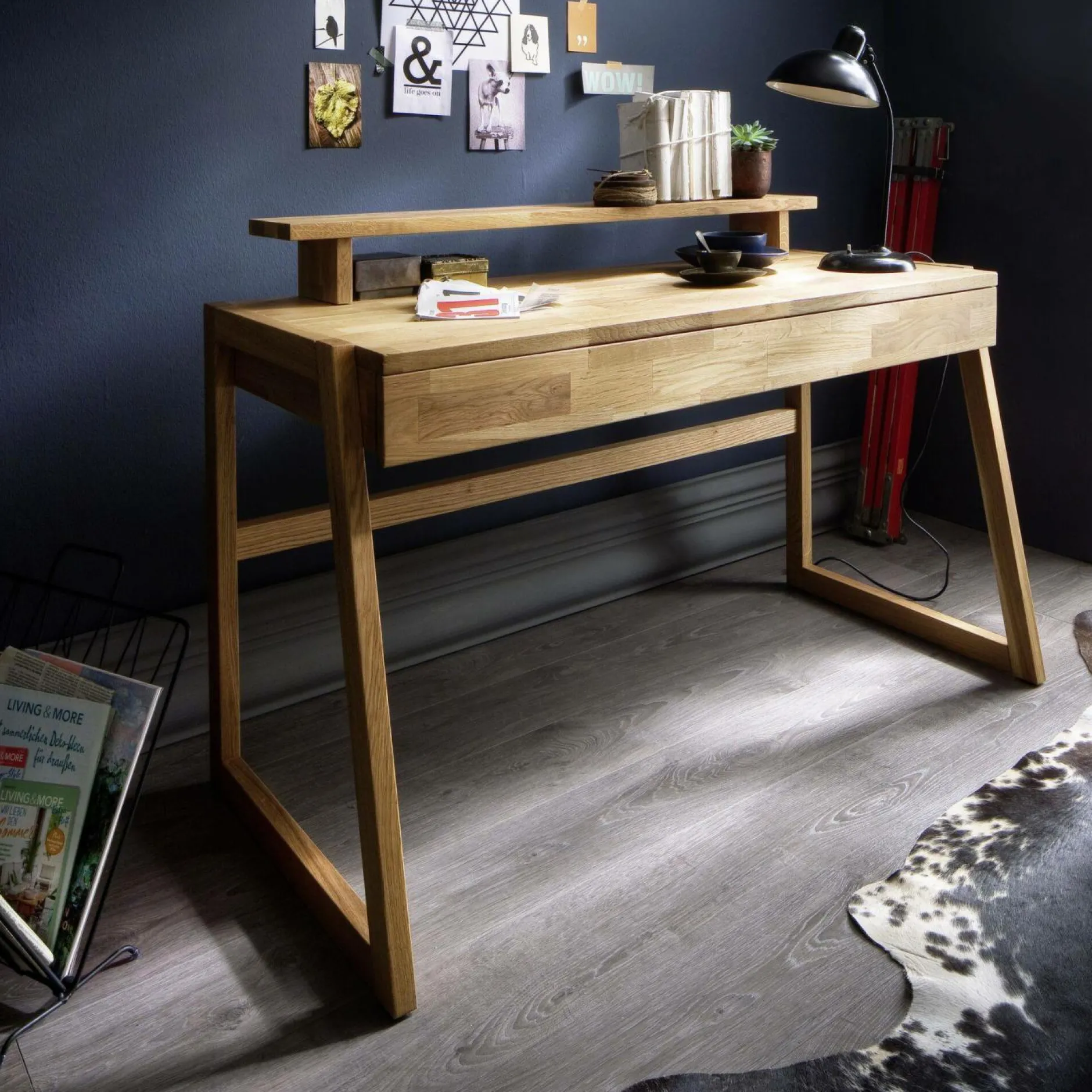 Sa composition en chêne massif lui confère une grande robustesse et résistance. Son grain naturel et chaleureux apportera une touche d’élégance à votre espace de travail. Le grand tiroir intégré permet de ranger vos affaires essentielles, et pour plus de rangement, vous pouvez ajouter la Tablette pour bureau en chêne massif Cyriel en option.