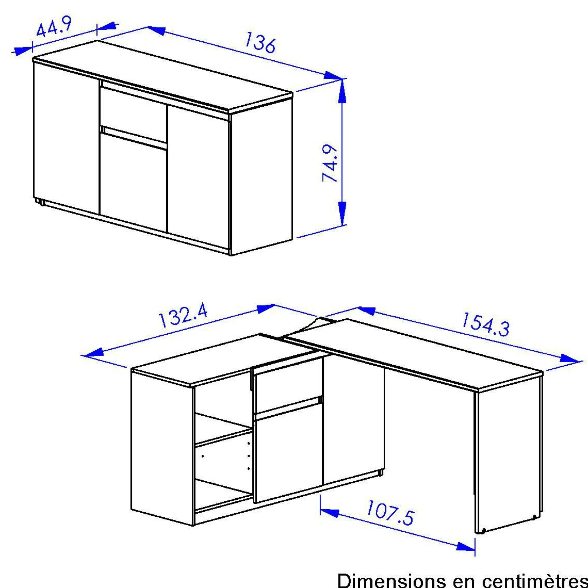 Le bureau présente un grand rangement fermé ainsi qu’un tiroir vous permettant de ranger soigneusement vos documents pour un espace de travail organisé et agréable.