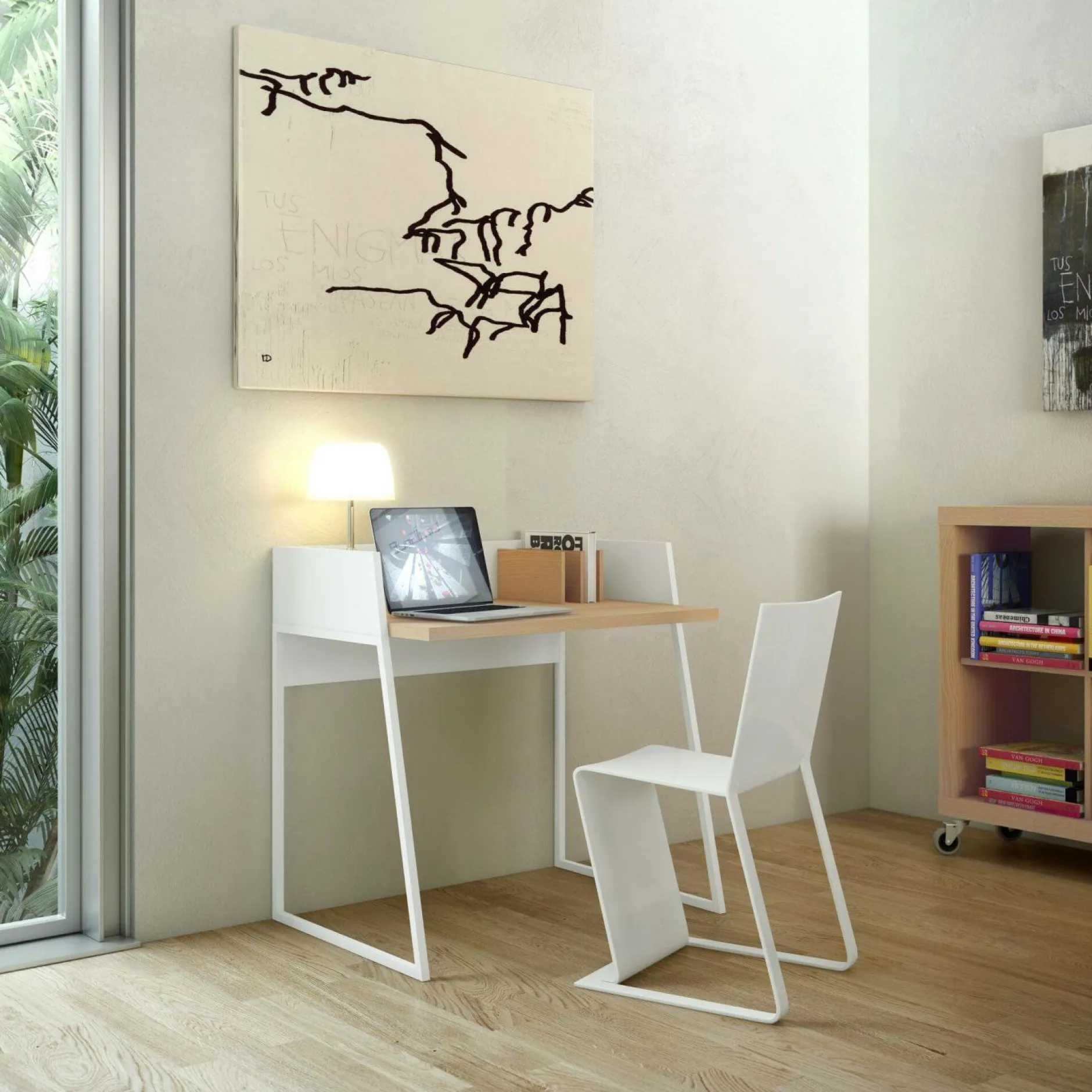 Le Bureau Tennesse est un bureau graphique et compact. Il s’inscrit dans un style résolument contemporain avec son design épuré et élégant. Il présente des pieds métalliques (laqués époxy), un plateau finition chêne ou noyer (placage bois) et un obturateur pour faire passer les câbles. Il est disponible dans 4 finitions : Blanc / Noyer (placage bois), Blanc / Chêne (placage bois), Noir / Noyer (placage bois) et Noir / Chêne (placage bois).