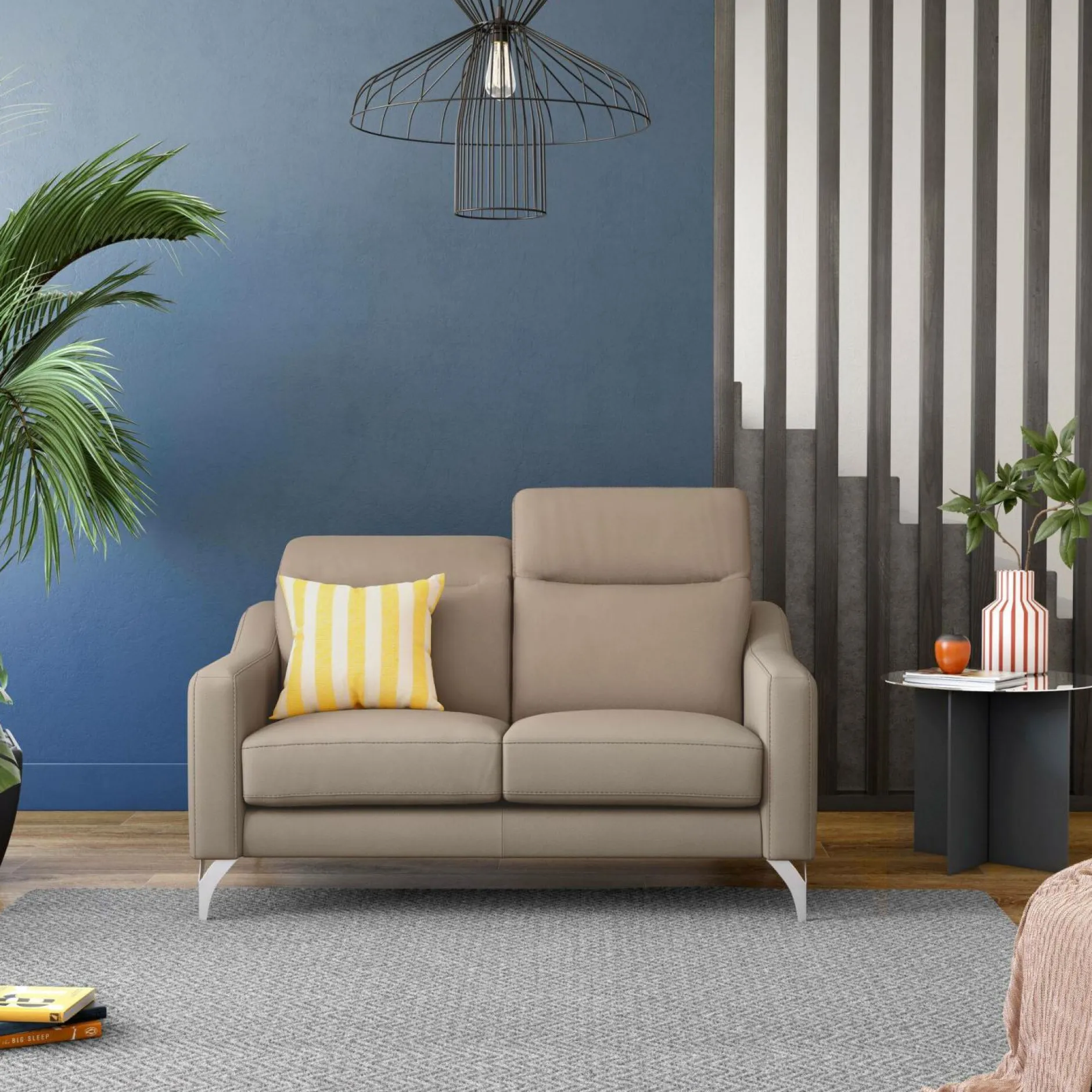 Ses accoudoirs hauts et fins, ainsi que ses pieds hauts ajoutent une touche d’élégance tout en étant peu encombrants.