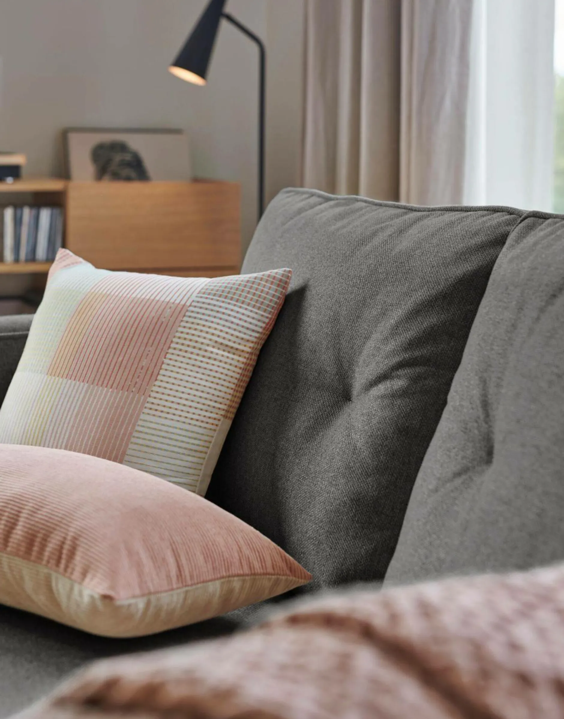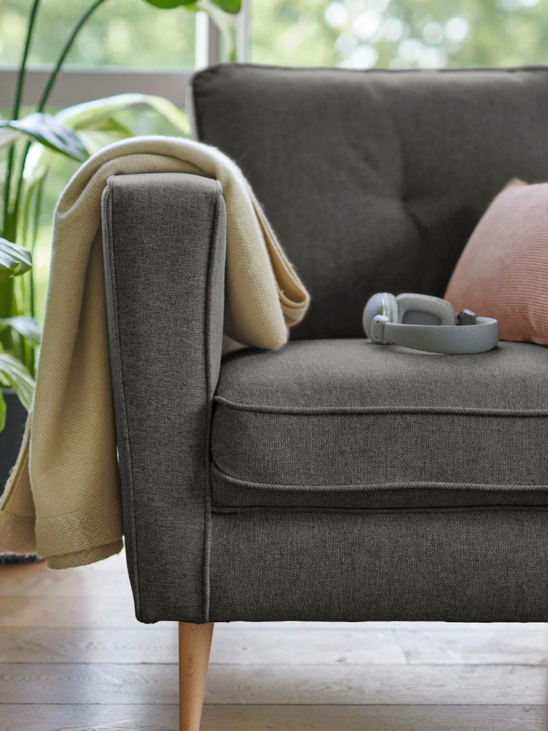 Le canapé Ondine, joliment perché ses ses pieds en bois, offre un style contemporain indéniable.