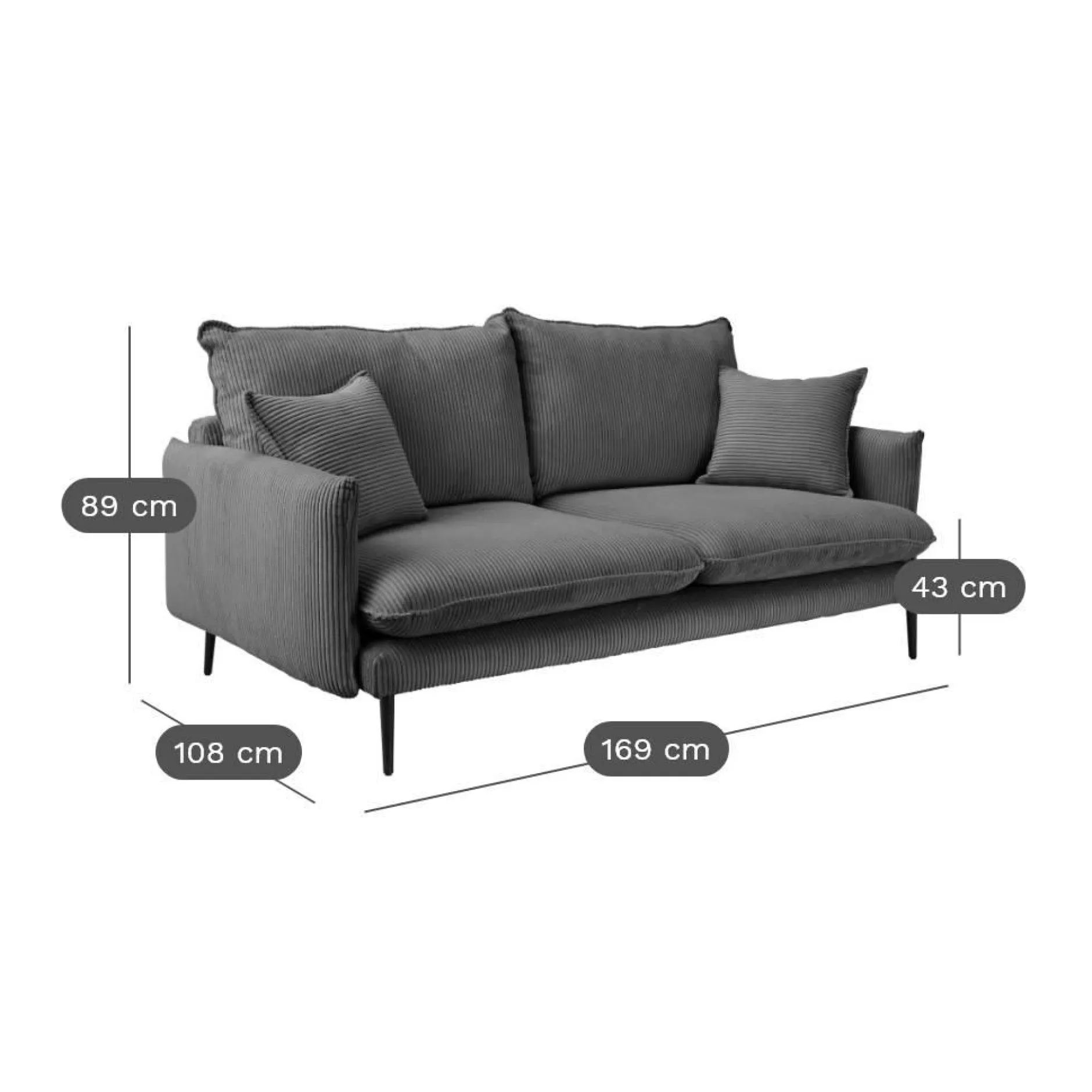 Revêtu d’un tissu en velours côtelé, le canapé Oréa apporte une touche esthétique et raffinée à votre salon.