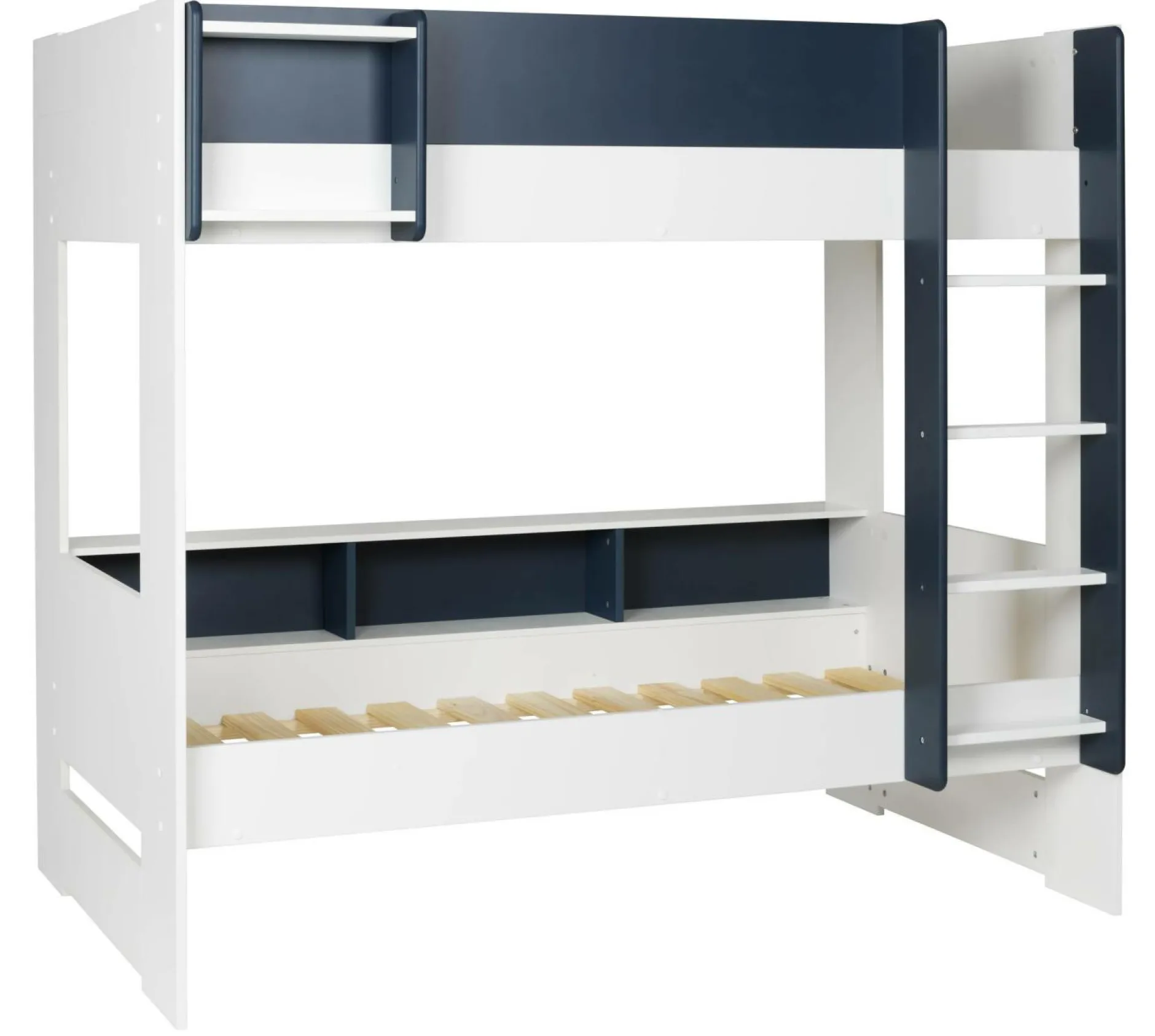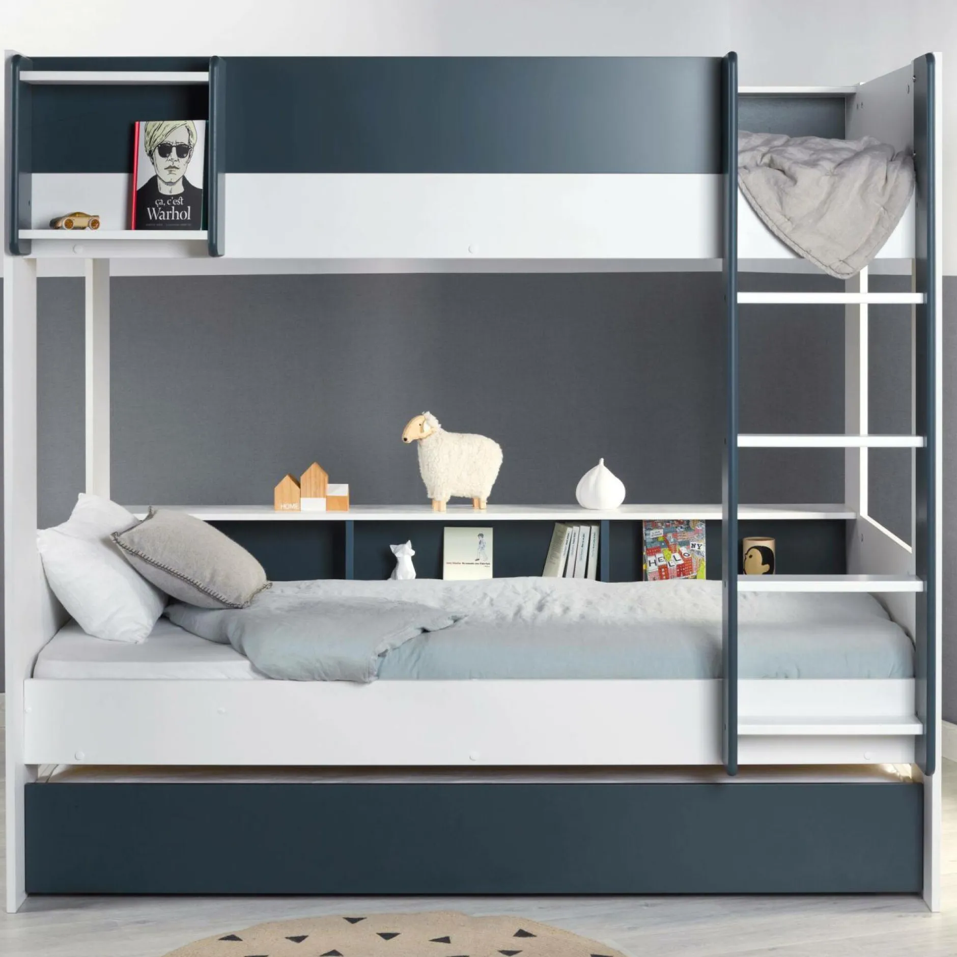 Ce modèle robuste est conçu pour accueillir deux couchages et optimiser l’espace de la chambre tout en accordant à chaque enfant son intimité. Ses contours surélevés et son échelle à marches plates assurent à vos enfants une nuit en toute sécurité.Chaque lit est équipé de 3 rangements et ainsi, chacun pourra créer son univers, son cocon, en y rangeant ses affaires. Petit plus, le lit du haut est équipé d’une étagère supplémentaire. Choisir les lits superposés Séraphin, c’est vous garantir un meuble durable et robuste. La sobriété des couleurs se mariera parfaitement à votre décoration et amènera un côté moderne à votre pièce. Avec les lits superposés Séraphin, optez pour le design sans transiger sur la qualité.