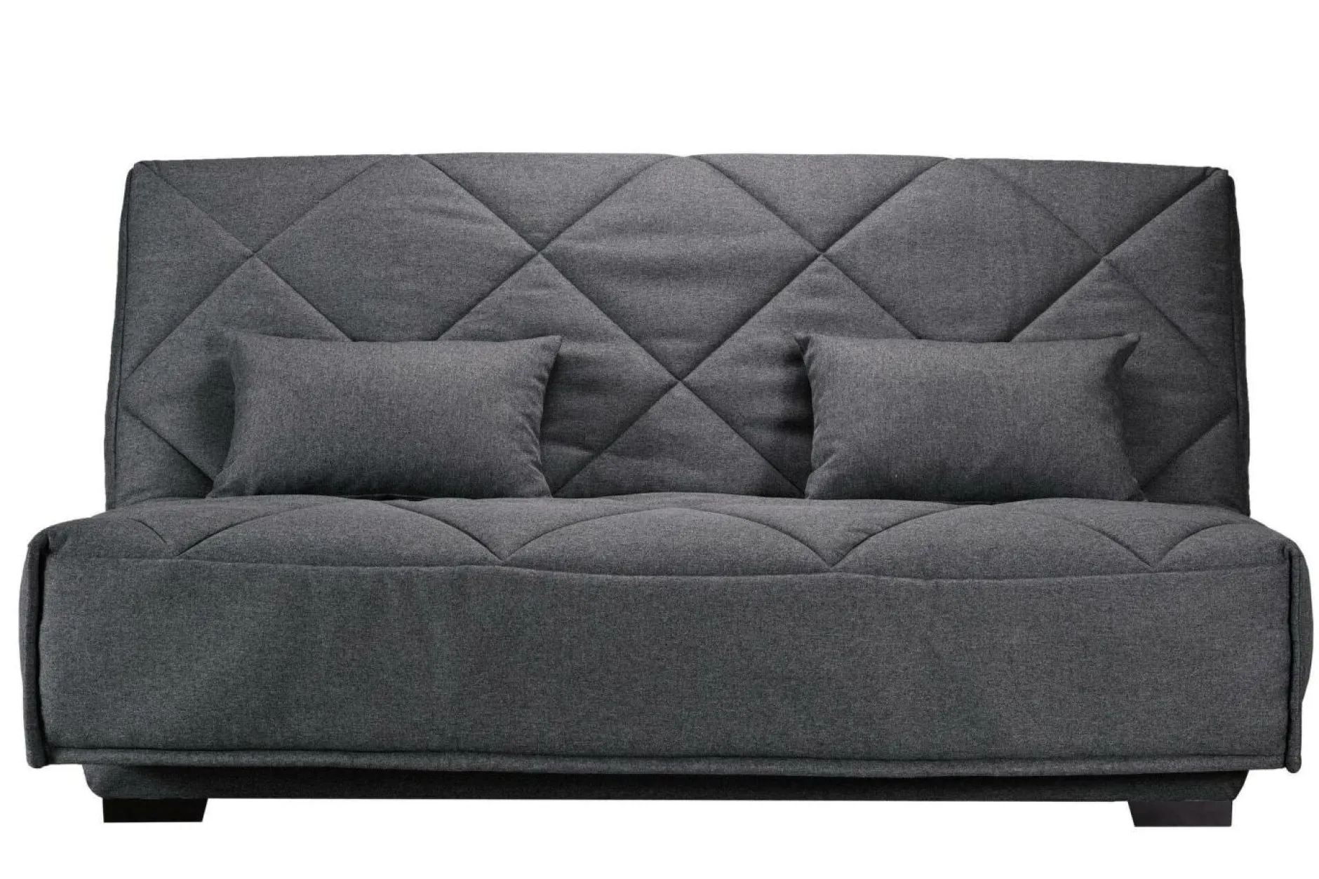 Le canapé clic clac Gina est habillé d’une housse ouatinée avec des piquages en losanges, revêtu d’un tissu légèrement chiné très qualitatif, décliné dans plusieurs coloris tendances.