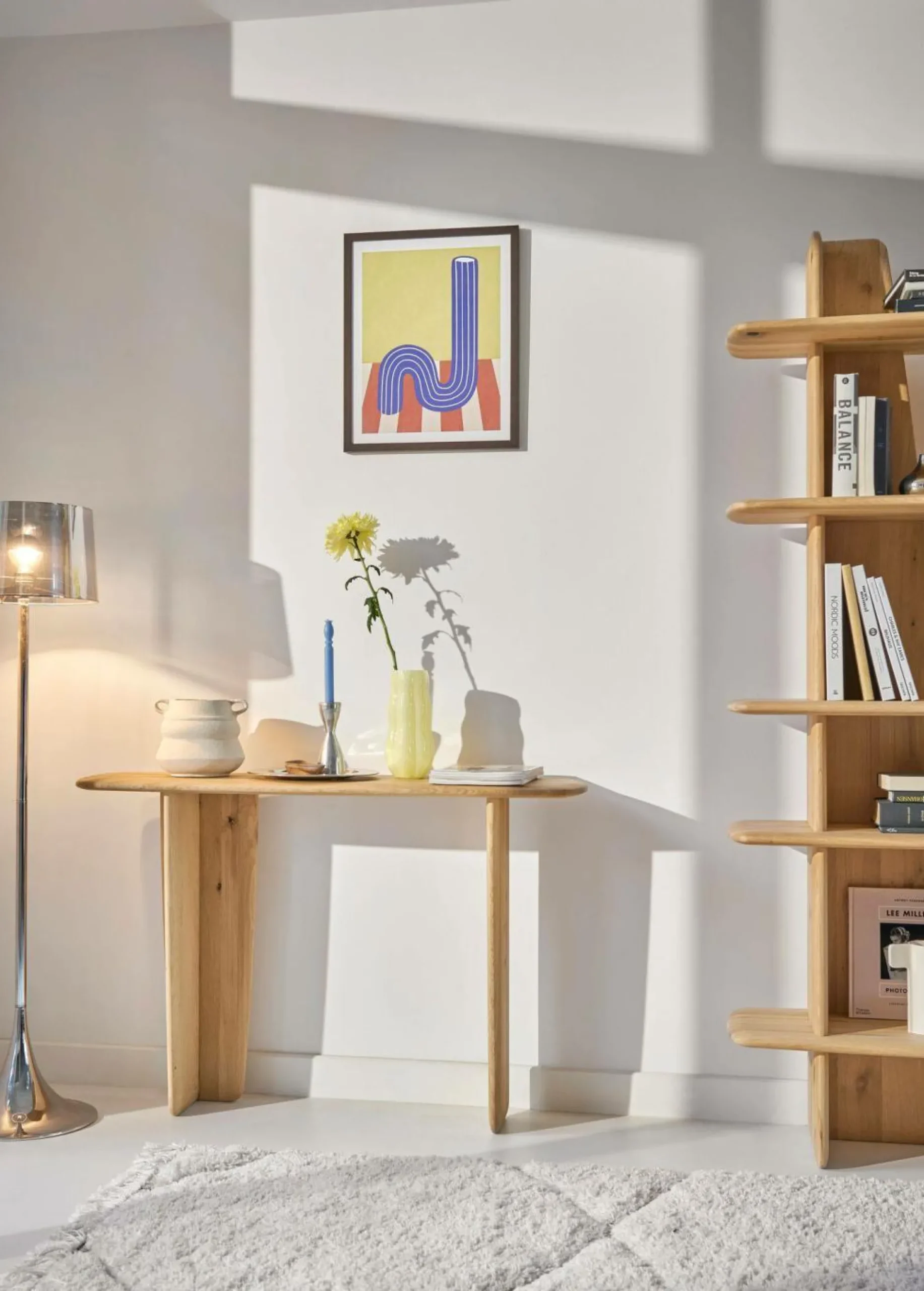 Apportez une touche d’authenticité et de légèreté à votre intérieur avec la console en chêne massif Maëlle. Ses lignes épurées, sa silhouette élancée et ses bords arrondis lui confèrent une allure douce et contemporaine, idéale pour habiller un mur sans alourdir l’espace.