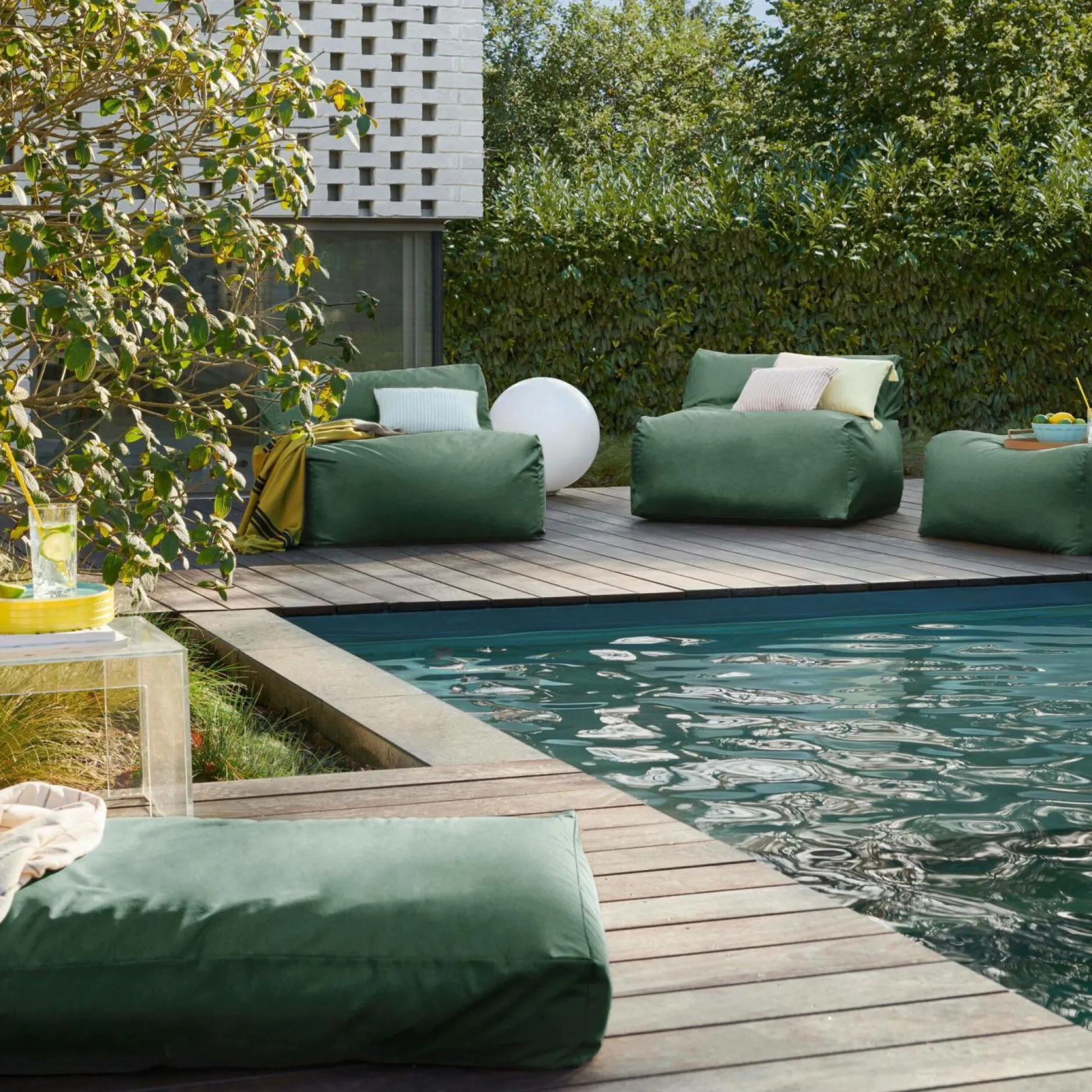 La gamme Héva c’est à la fois une belle palette de coloris mais aussi beaucoup d’atouts rien que pour vous : les produits sont 100% recyclés, traités spécialement pour l’extérieur (déperlant, anti UV, résistant au chlore et à l’eau de mer) et confectionnés non loin de chez nous, dans la région de Valence en Espagne.