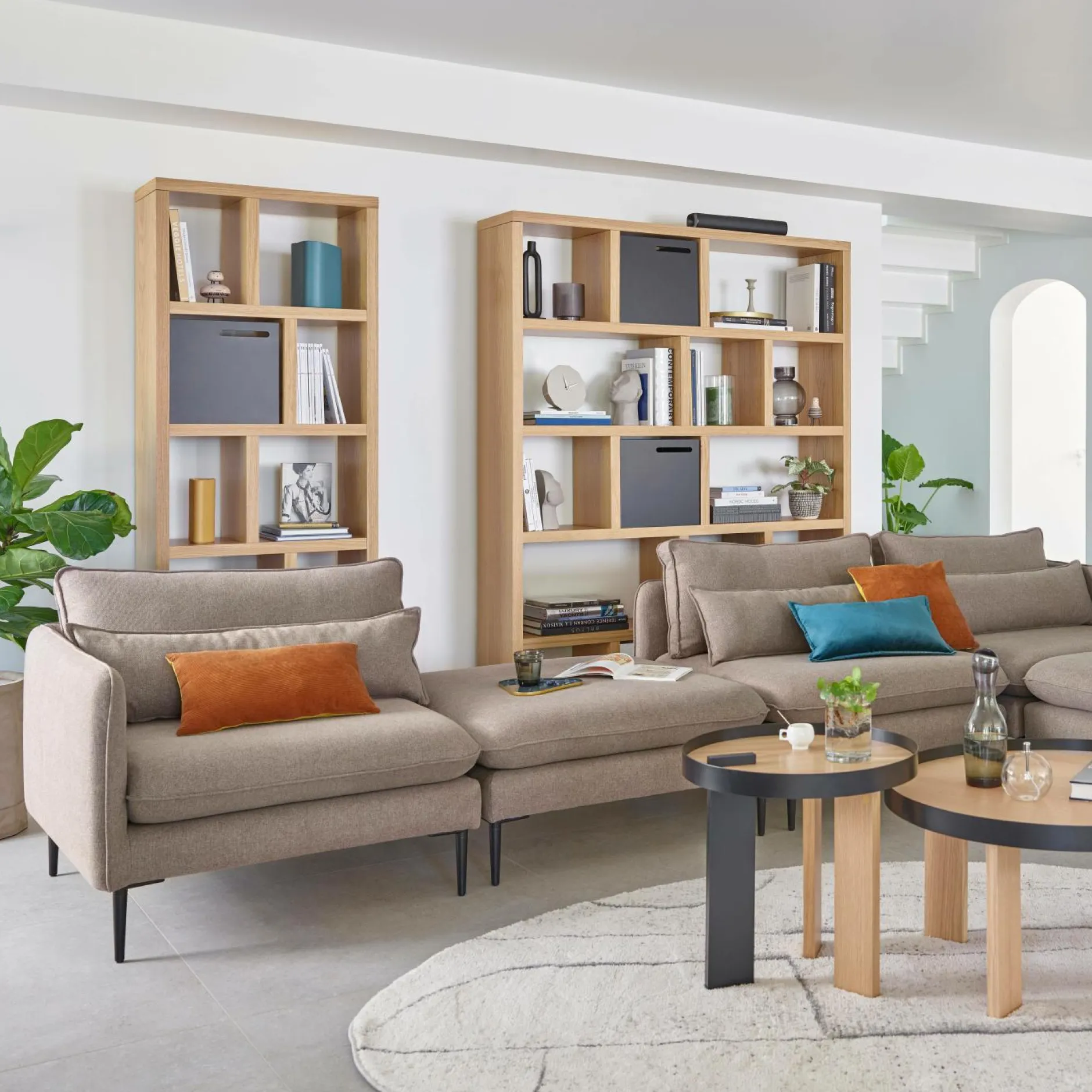 Disponible en plusieurs finitions, la bibliothèque Texas s’intègre dans de nombreux styles d’intérieur, tout en apportant une touche contemporaine et chaleureuse. Et pour encore plus de modularité, personnalisez votre bibliothèque avec un ou plusieurs cubes de rangement Texas en option, à insérer dans les niches pour dissimuler ce que vous souhaitez garder à portée de main, mais à l’abri des regards.