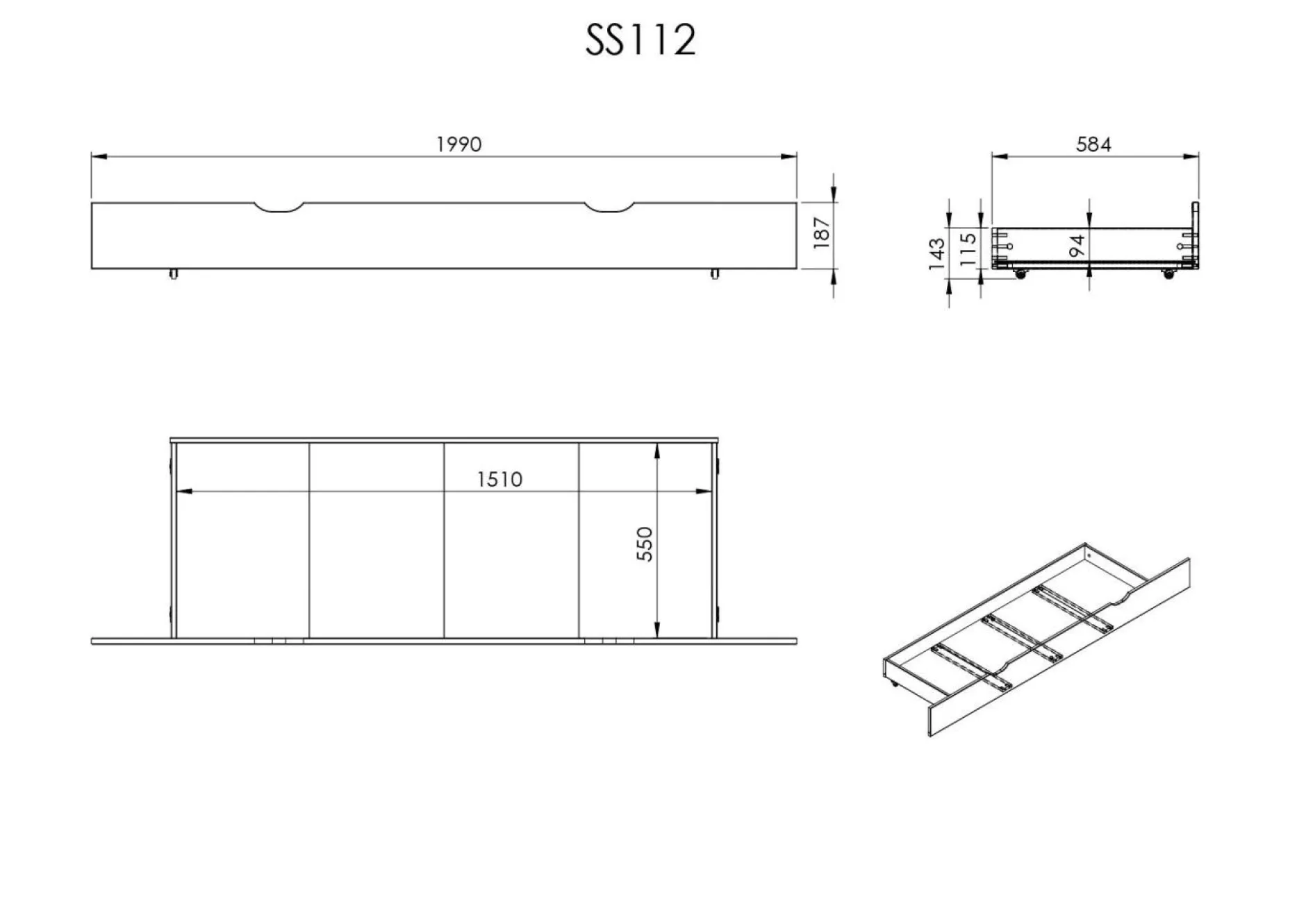 Le lit rangement Théo est fonctionnel et ingénieux. Sa tête de lit est pourvue de deux tablettes faisant office de chevet de part et d’autre du couchage.