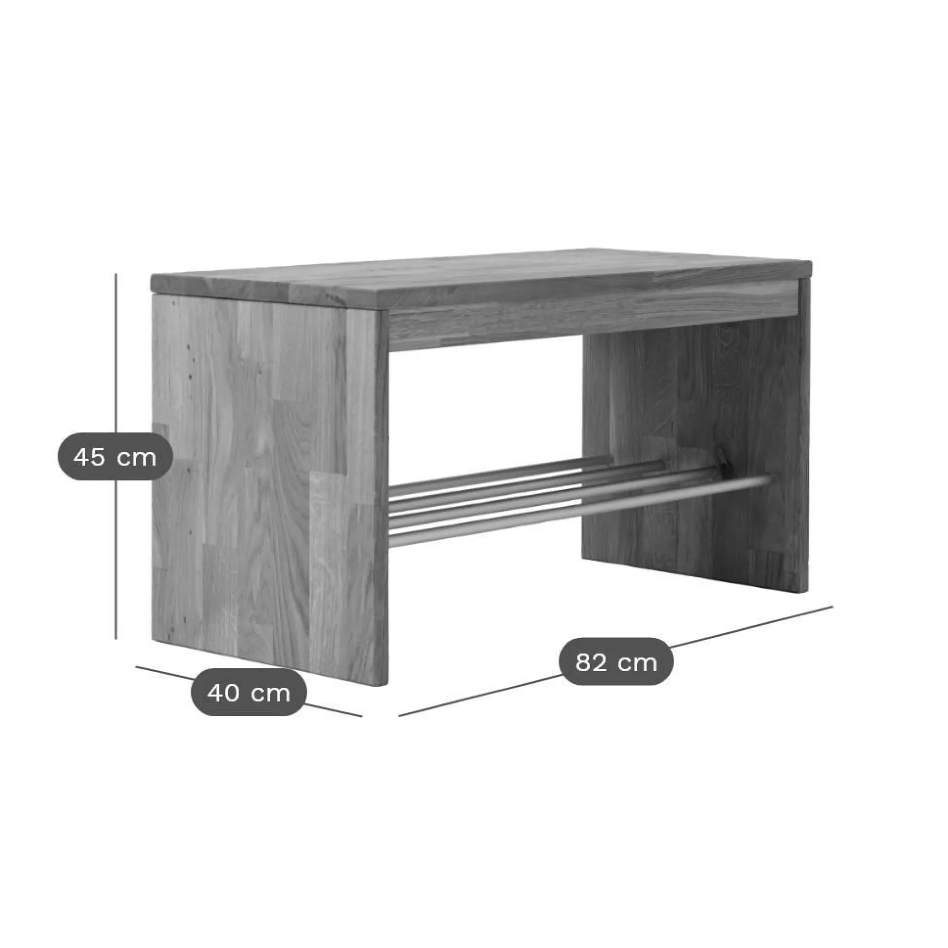 Fabriqué en hêtre massif ou en chêne massif, ce banc met en valeur la beauté authentique du bois, avec des finitions qui soulignent les veines naturelles et la robustesse du bois massif. Son design simple et épuré s’intègre facilement dans n’importe quelle pièce, que ce soit dans une entrée, un dressing ou une chambre.