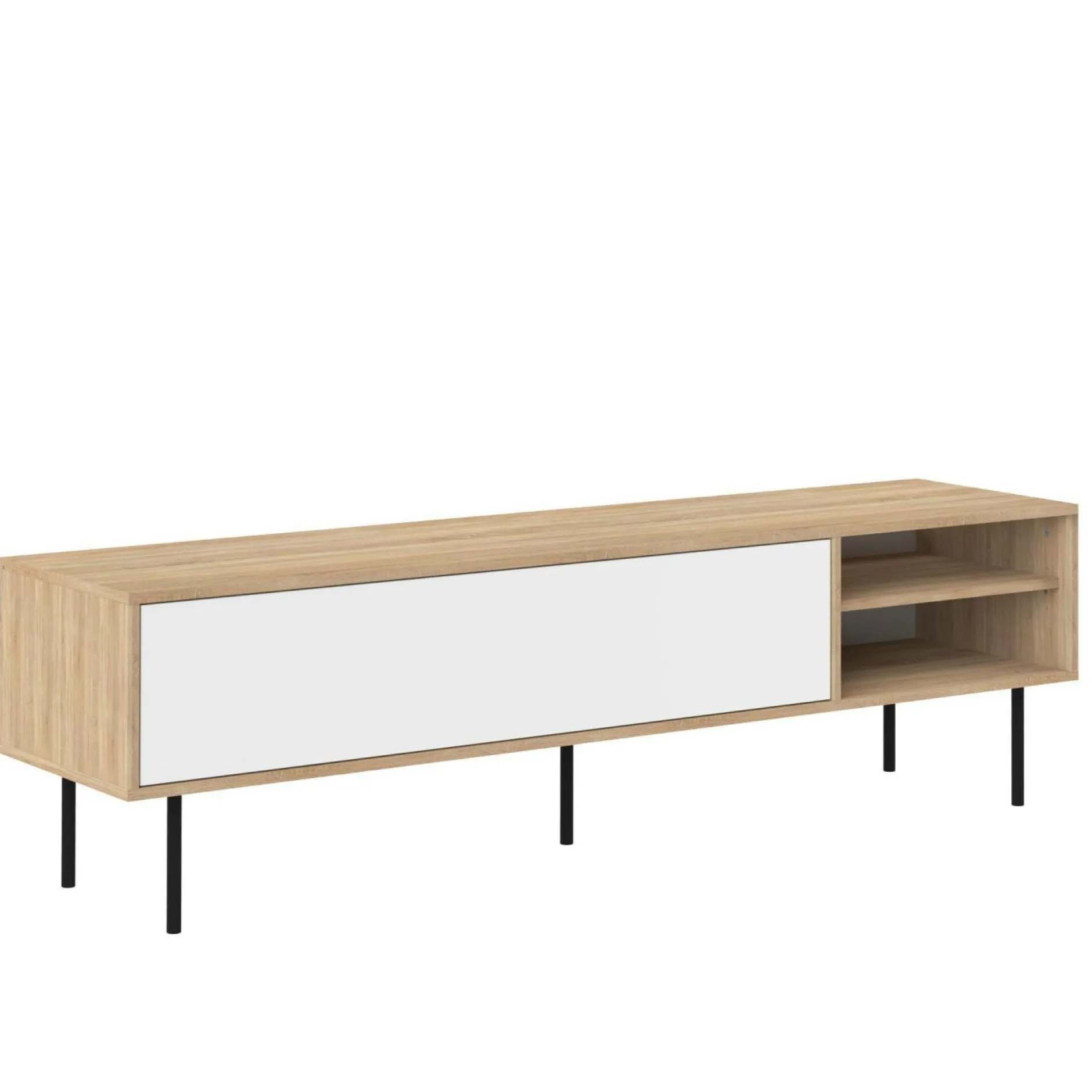 Très pratique, il dispose d’un grand volume de rangement grâce à sa porte renfermant 2 grandes niches mais également grâce à ses 2 niches latérales ouvertes. De quoi entreposer tout votre matériel multimédia, ranger, vos Cds, DvD, photos…