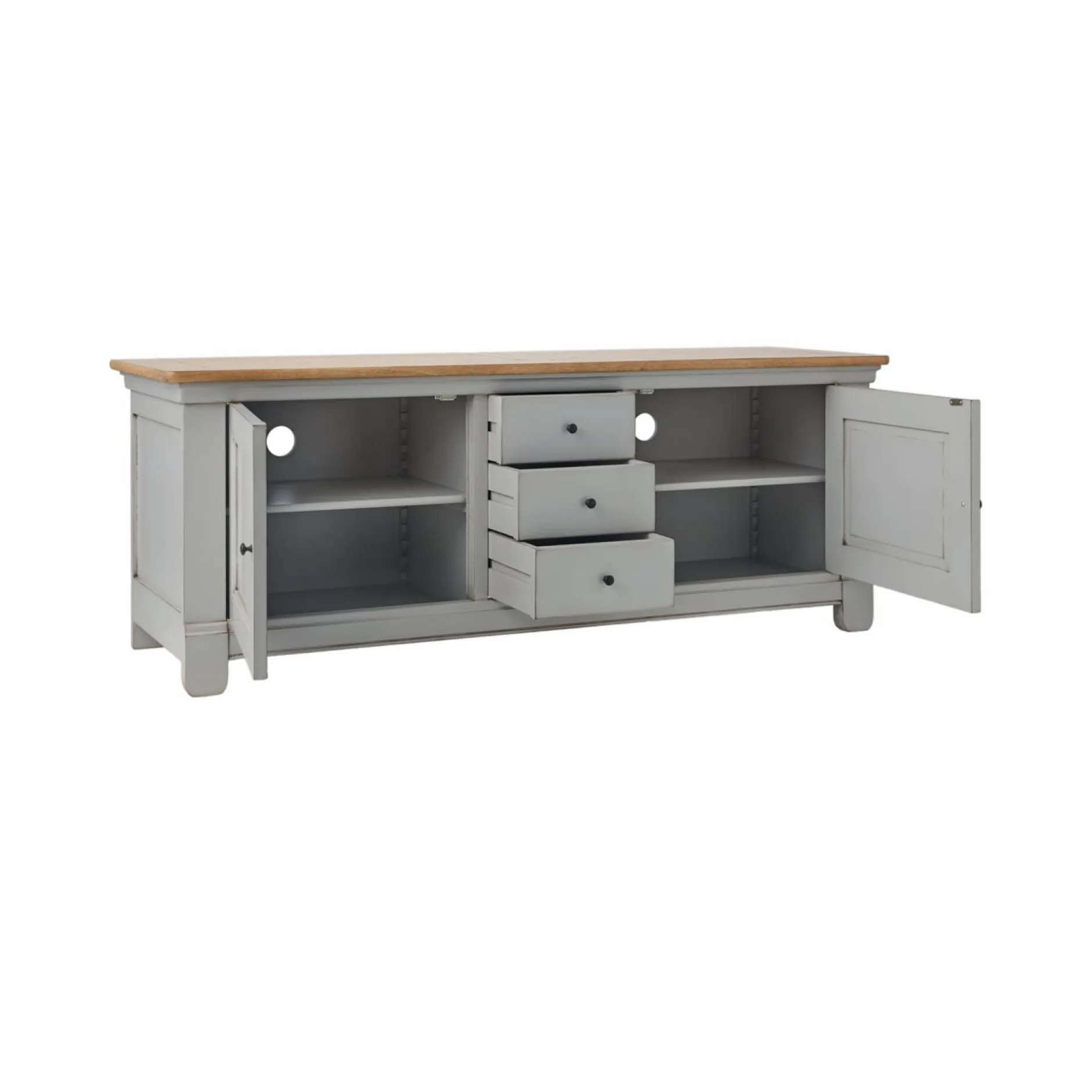 Et si votre télévision s’installait dans un écrin de charme ? Le meuble TV en bois massif Embellie, inspiré des meubles de famille, apporte à votre salon une atmosphère chaleureuse et intemporelle.