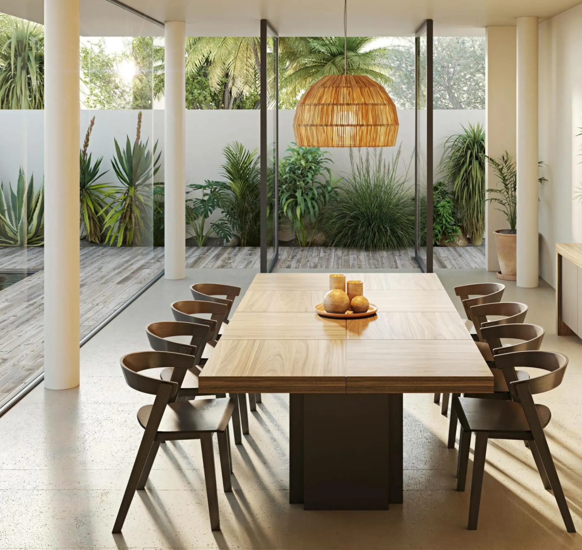 Ses formesgéométriques et ses couleurs s’inscrivent dans un style contemporain pour apporter une touche de modernité à votreintérieur. Elle apporte la solution à vos repas familiaux en pouvant accueillirjusqu’à 10 personnes sans que personne nesoit gêné par un pied de table.