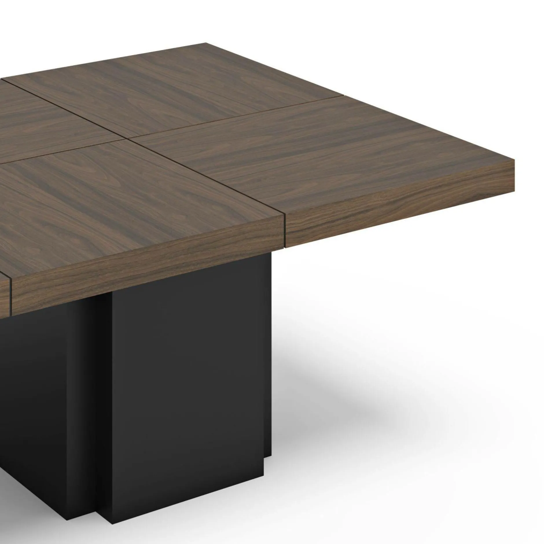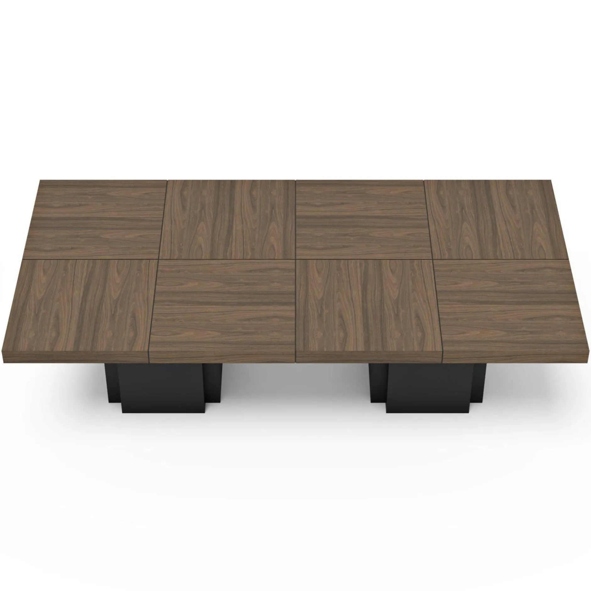 Le plateau, composéde 8 panneaux carrés à assembler, repose sur 2 pieds centraux qui amène stabilité et solidité à la table.