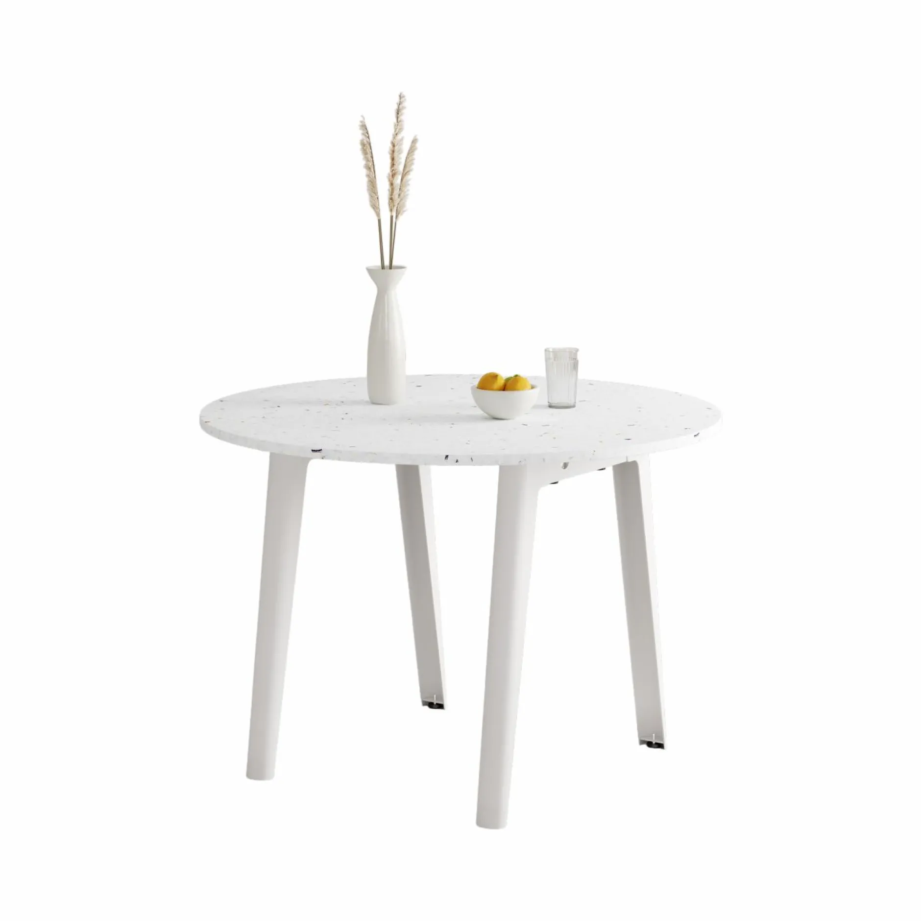 De forme arrondie, le plateau de la table est pourvu d’éclats colorés à sa surface qui témoignent de la vie antérieure de ses composants. La couleur de piétement est au choix, afin de créer la pièce déco singulière de votre choix.